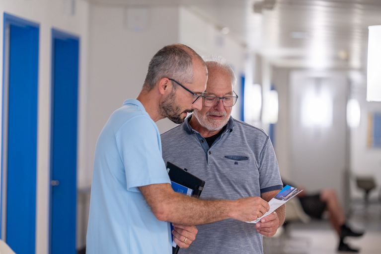 Gerne stehen Ihnen die Ärzte, Rehakoordinatoren, Therapeuten und Mitarbeitenden des Pflegeteams und Sozialdienstes zur Verfügung.